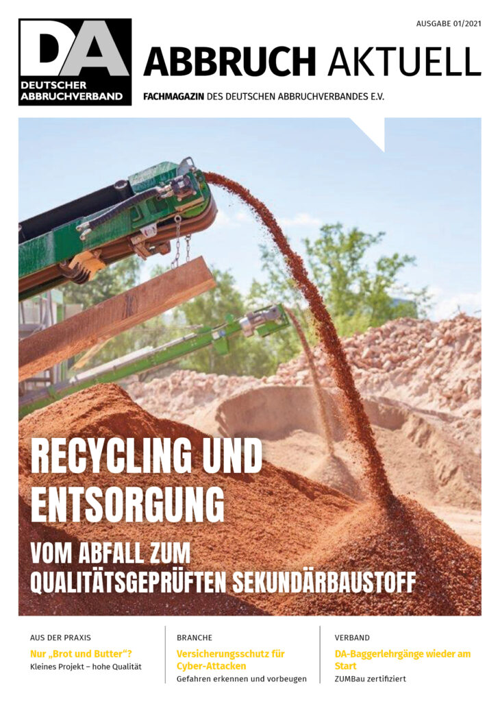 Das Titelthema „Recycling und Entsorgung“ enthält den interessanten Grundsatzartikel „Die Abbruchbaustelle als Rohstoffquelle heute und morgen“, da die Abbruchbranche eine Schlüsselfunktion bei der Gewinnung von Sekundärrohstoffen im sog. „Urban Mining“ inne hat.