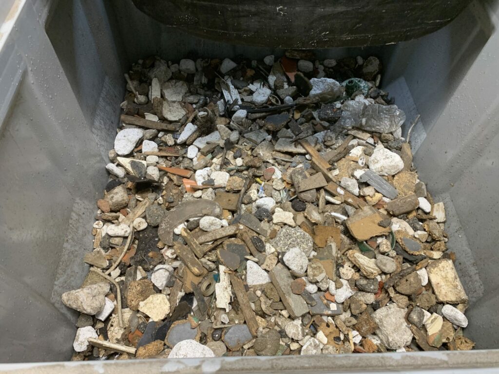Live und vor Ort konnten die Mitglieder des FA Recycling und Entsorgung miterleben, ob ein solches modernes Sortiersystem, das noch nicht ausgelegt ist auf diese Frage der Sortierung von gebrochenem gemischtem Bauschutt, überhaupt in der Lage ist, relevante Anteile enthaltener Störstoffe zu erkennen und auszusortieren.